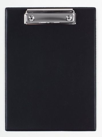 Jednodeska A5 s klipem nahoře. Kovový klip, plastová folie, extra pevná lepenka 2,5 mm. Barva černá.