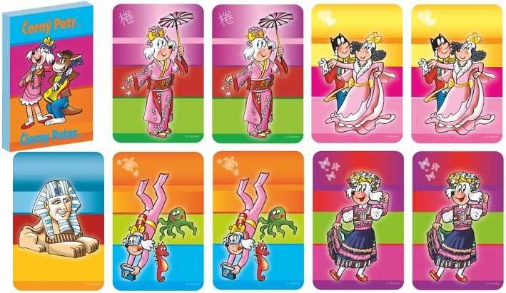 Velikost karet 6 x 9 cm velikost krabičky 6 x 9 x 1,2 cm pevný karton s lesklou povrchovou úpravou - vodoodpudivá, krabička i karty krabička papírová a to z důvodů tradice a rovněž praktičnosti (bezpečnosti dětí), nedochází k jejímu poničení (rozbití) z důvodu chybné manipulace (např. při pádu) a tím nevznikají ani ostré hrany, ani nebezpečné úlomky, které by děti mohly vdechnout či spolknout na výrobky byla udělena prestižní ocenění "Česká kvalita", "Bezpečná a kvalitní hračka" a to jedinou autorizovanou institucí ZÚLP na každém výrobku uvedeny návody ke hře a patřičné piktogramy