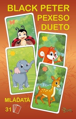 Černý Petr klasická karetní hra s obrázky. Hra se skládá z 31 karet, které jsou rozděleny do 15 dvojic, z nichž je každá dvojice označena stejným obrázkem. Pouze jediná karta se od ostatních liší a to je Černý Petr . Vyhrává ten, kdo bude mít dvojice vyloženy nejdříve. Prohrává ten, komu zůstane v ruce Černý Petr. Hry se můžou zúčastnit nejméně 3 hráči. Součástí balení je 31 karet a 1 návod. Tento karetní set si oblíbí všechny děti milující mláďátka.