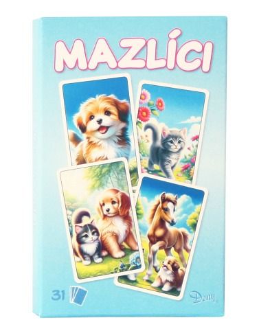 Černý Petr, pexeso a dueto klasické karetní hry s obrázky zvířecích mazlíčků. Hra se skládá z 31 karet, které jsou rozděleny do 15 dvojic, z nichž je každá dvojice označena stejným obrázkem. Pouze jediná karta se od ostatních liší a to je Černý Petr . Vyhrává ten, kdo bude mít dvojice vyloženy nejdříve. Prohrává ten, komu zůstane v ruce Černý Petr. Hry se můžou zúčastnit nejméně 3 hráči. Součástí balení je 31 karet a 1 návod. Tento karetní set si oblíbí všechny děti milující zvířecí mazlíčky. V návodu jsou popsané i další dvě hry Pexeso a Dueto.