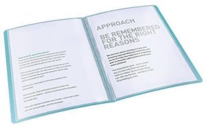 Vlastnosti: 40 integrovaných kapes; povrch s embosovaným vzorem; samolepící hřbetní štítek určený k popisu;