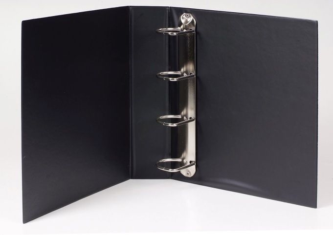 Zakládací pořadač s průhlednou kapsou na přední straně a hřbetu. 4 kroužková mechanika, kroužek má tvar písmene "D"