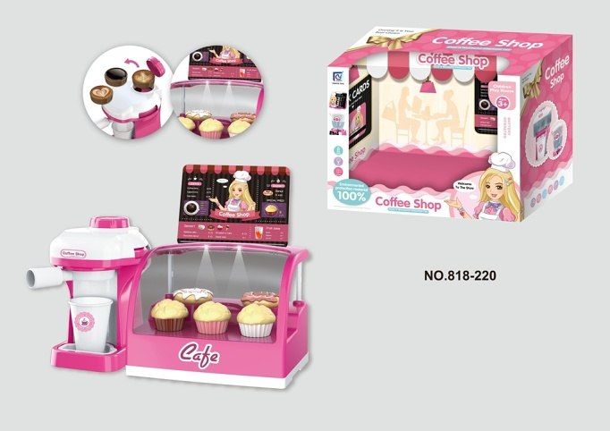 Sada pro malé kavárníky. Součástí sady je kávovar a vitrína s koláčky. Sada vyžaduje 3× AG13 baterie- které jsou součástí balení. Výrobek je vhodný pro děti od 3 let. Na baterie: 3x LR44 (jsou součástí balení)