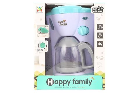 Plastový kávovar na baterie. Napájení na 2 AA baterie (nejsou součástí). Kávovar vydává zvuky a svítí stejně jako při přípravě kávy. Rozměry balení cca 19,5 x 24 x 14,5 cm. Věk 3+