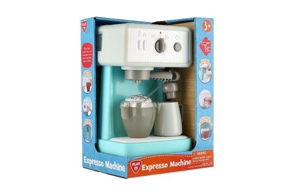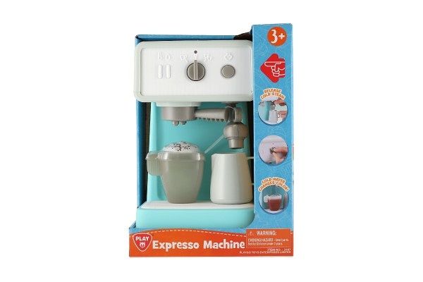 Kávovar presovač plast 13x20cm vypouštějící páru na baterie se světlem,zvukem v krabici