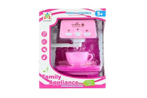 Plastový kávovar na baterie. Napájení na 2xAA baterie, které nejsou součástí balení. Po vložení baterií kávovar vydává světelné a zvukové efekty, zároveň lze naplnit nádržku vodou a pomocí tlačítka reálně vypouštět vodu přes páku. Baleno v krabici. Rozměry balení cca 17x20x9,5 cm. Věk 3+