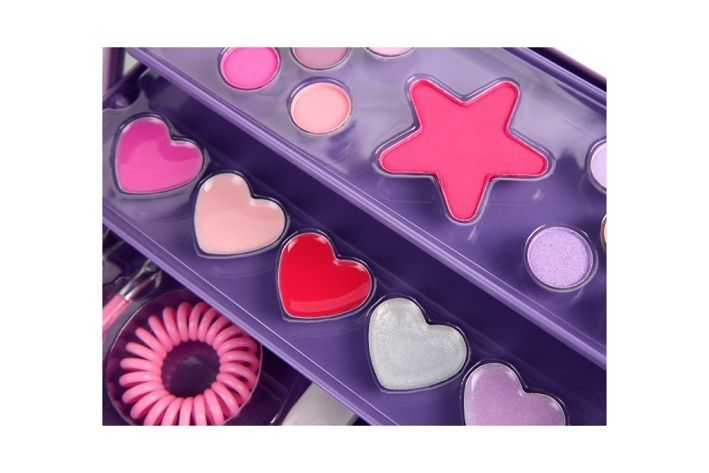 Kazeta s líčením v kovové krabičce rozkládací – třípatrová. Patra obsahují – 10 druhů očních stínů, tvářenku, 6 druhů lesků na rty, 2 štětečky na nanášení stínů, 2 štětečky na nanášení lesku na rty, 1 štěteček na nanášení tvářenky, gumičku do vlasů a zrcátko ve tvaru srdíčka.