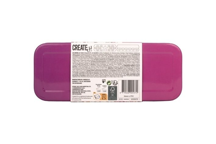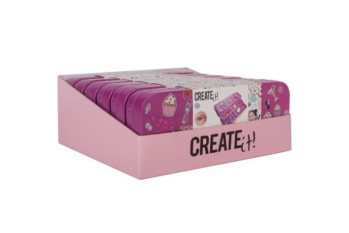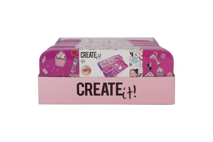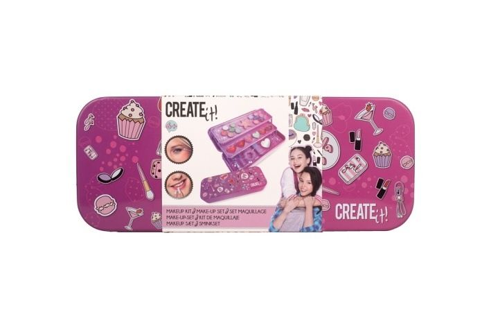 Kazeta s líčením v kovové krabičce rozkládací – třípatrová. Patra obsahují – 10 druhů očních stínů, tvářenku, 6 druhů lesků na rty, 2 štětečky na nanášení stínů, 2 štětečky na nanášení lesku na rty, 1 štěteček na nanášení tvářenky, gumičku do vlasů a zrcátko ve tvaru srdíčka.
