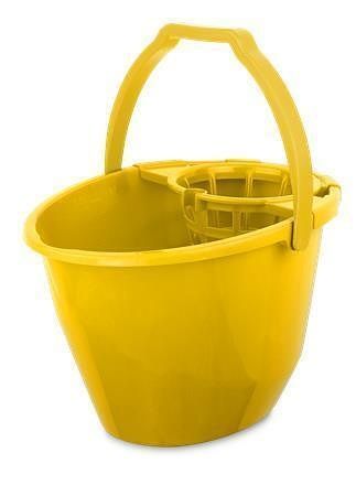 Oválný kbelík na mop se zesílenými stěnami a optimálně vyváženým těžištěm, vybavený otočným ždímacím košem.