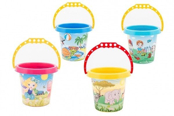Barevný kyblík s veselým obrázkem je senzačním doplňkem k moři i na pískoviště! Praktické ucho zaručuje pohodlné přenášení.