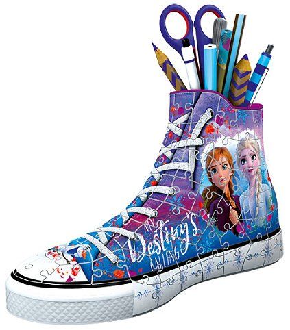 Vytvoř si ze 108 plastových puzzle dílků tuto klasickou tenisku s motivem Frozen 2 a získej perfektní dekoraci do pokoje! Po složení na tebe čeká další bonus: můžeš ji použít na štětce, tužky, atd.