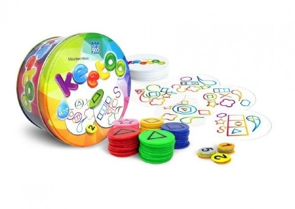 Který symbol na kartě schází? Urči správně oba chybějící symboly, sbírej body, buď nejrychlejší! Pokřikem "KEETOO" zastrašíš své soupeře, mají posledních pár sekund...KEETOO je další dynamická hra pro celou rodinu. Plechová krabička obsahuje 35 plastových voděodolných karet, 5 sad /50 ks/ plastových žetonů v různých barvách se symboly, 42 ks plastových žetonů s čísly pro bodové ohodnocení.