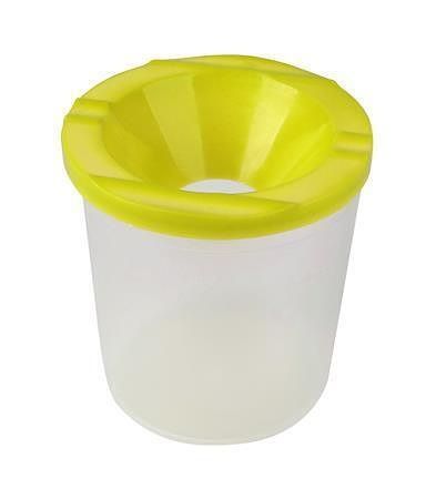 Kelímek na štětce s víčkem, které zabraňuje vylití vody.