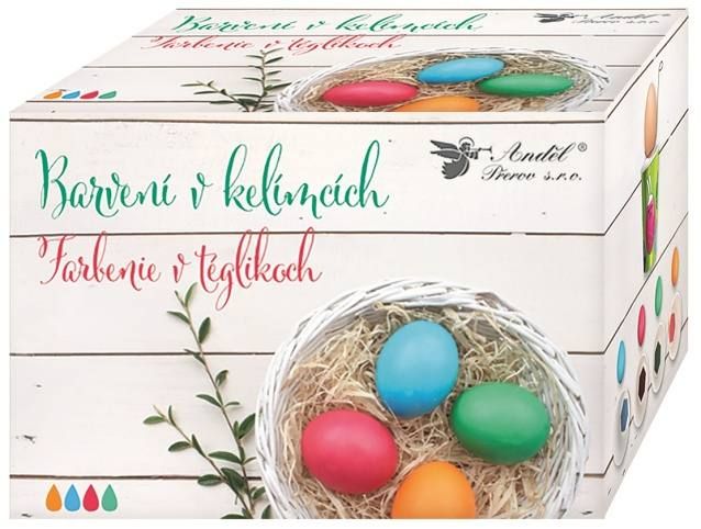 Barvení vajíček v kelímcích Vytvořte si krásná velikonoční vajíčka s barvením v kelímcích. Snadné a jednoduché použití! Balení obsahuje: 4 ks papírových kelímků s barvou připevněnou na dnědržáček na vajíčkaBarvy: červená, zelená, modrá, oranžová Návod: Vejce uvařte v osolené vodě.Do cca poloviny kelímku nalijte horkou vodu a přidejte 2-3 lžíce octa.Teplá vejce jedno po druhém namáčejte, dokud nedosáhnete požadované barvy a nechejte uschnout. K dosažení lesku můžete lehce namazat kuchyňským olejem.Jeden kelímek nabarví 4 - 5 vajíček.