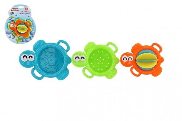 Sada barevných kelímků originálního tvaru přinese vašemu dítěti spoustu zábavy při hraní ve vodě během koupele ve vaně i v bazénku. Kelímky jsou ve tvaru želviček, součástí nejmenší je vodní mlýnek.