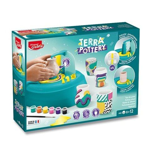 Kreativní keramická sada Terra Pottery obsahuje skutečný hrnčířský kruh s nožním pedálem k ovládání rychlosti otáčení a s výkonným motorem, který umožňuje vytvářet originální, jemně zdobenou keramiku. Možnost výběru ze dvou úrovní obtížnosti dle zručnosti dítěte - tj. tvorba se šablonou (4 tvary) nebo bez šablony. Ideální pro rozvoj dětské zručnosti a tvůrčích smyslů. Vhodné pro děti od 8 let.