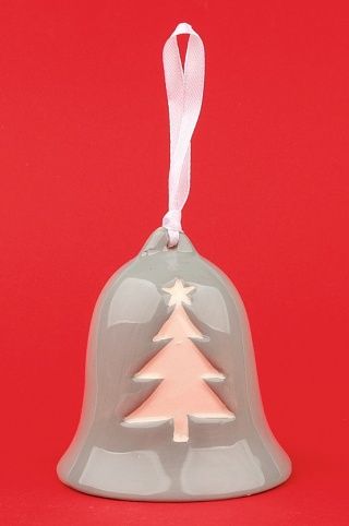 Keramický zvonek šedý se stromečkem a vločkami 8,5 cm