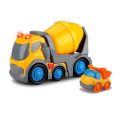 Kiddy Go! Míchačka s efekty. Balení obsahuje auto o velikosti 31 cm a malé autíčko. Míchačka nabízí světelné a zvukové efekty pro větší zábavu. Efekty se aktivují stiskem tlačítka na střeše kabiny. Návěs s míchačkou je možné otáčet. Kolečka na volnoběh. Auto vyžaduje 2xAA baterie, jsou součástí. Vhodné pro děti od 18ti měsíců. Na baterie: 2x AA (jsou součástí balení)