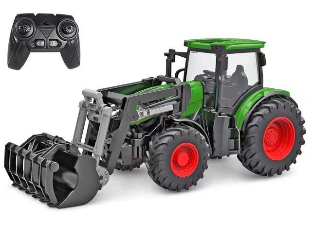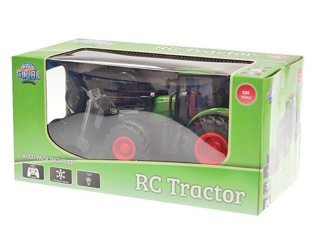 Kids Globe Farming R/C traktor zelený 27cm s nakladačem na baterie se světlem 2,4GHz v kra