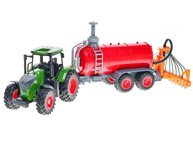 Kids Globe Farming traktor volný chod 49cm s cisternou stříkající vodu v krabičce