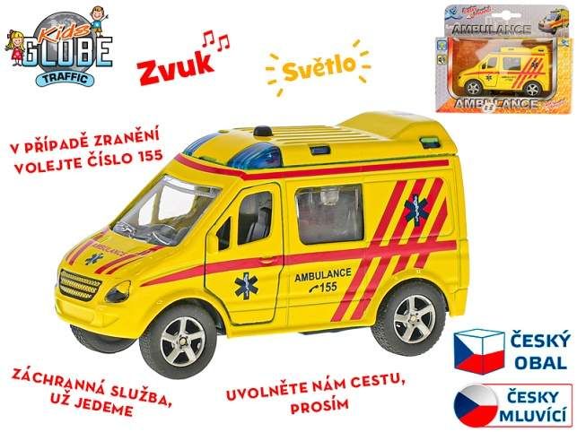 Kids Globe Traffic ambulance CZ 11cm kov zpětný chod na baterie česky mluvící se světlem v