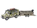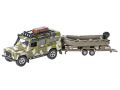 Kids Globe Traffic Land Rover 27cm kov zpětný chod s přívěsem a lodí v krabičce