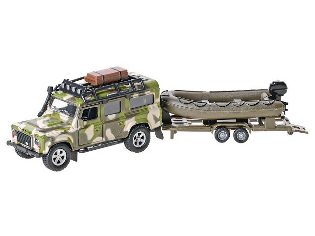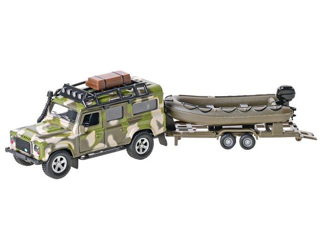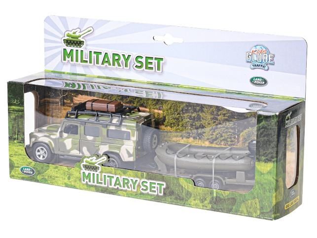 Land Rover o velikosti 27 cm z kolekce Kids Globe Traffic potěší každého malého milovníka aut. Součástí auta je i přívěs s lodí. Sada je ve vojenském designu.