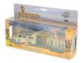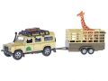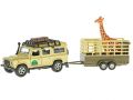 Kids Globe Traffic Land Rover Defender 14cm kov na zpětný chod s přívěsem 14cm a žirafou
