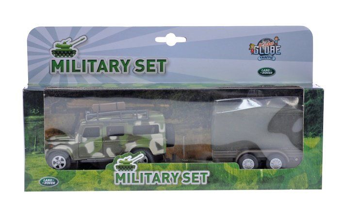 Vojenský set je ideální volbou. V setu se nachází auto Land Rover o velikosti 14,5cm na zpětný chod a vozík, který jde k autu připevnit. Auto má otevíratelné boční i zadní dveře. Tento set si zamiluje každý malý i velký kluk.