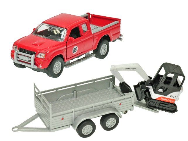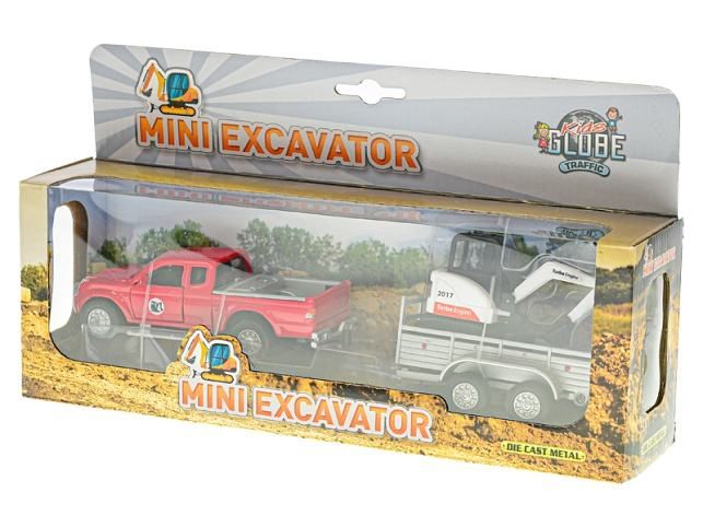 Kids Globe Traffic Mitsubishi Pajero kov 13cm na zpětný chod s přívěsem a bagrem 8cm v kra
