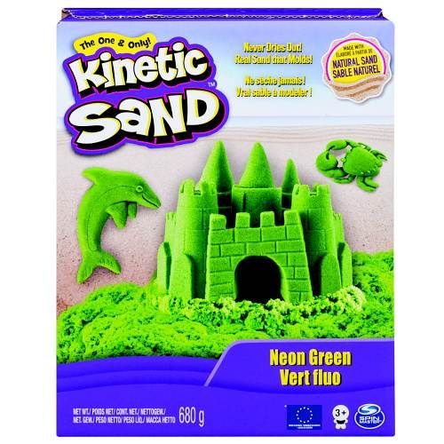 Balení neonových barev od Kinetic Sand, se kterým lze vytvořit krásné výtvory. Hmota nikdy nezatvrdne.