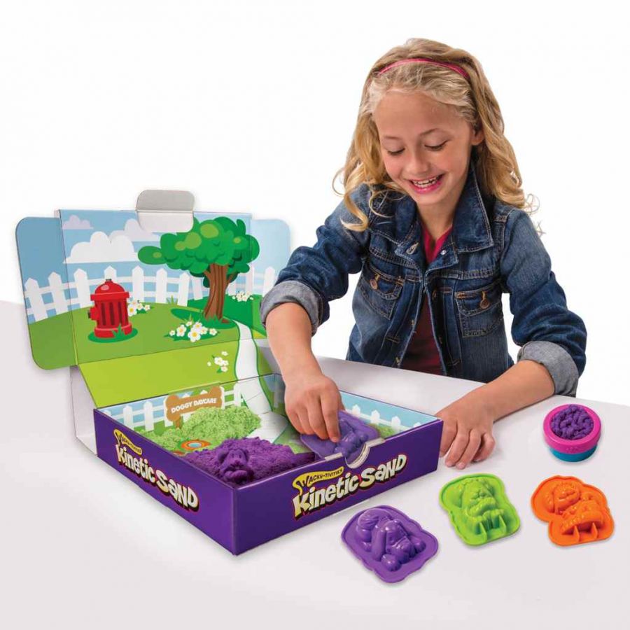 Kreativní sada Kinetického písku s motivy pejsků/dinosaurů se zalíbí každému dítěti. Vnitřek krabice je uzpůsoben jako hrací prostor. S Kinetickým pískem si užiješ spoustu legrace, tvaruj ho, mačkej ho, postav si hrad. Nikdy nebudeš chtít přestat. Kinetický Písek podněcuje dětskou tvořivost, snadno se uklízí, protože se lepí na sebe, ne na vás!