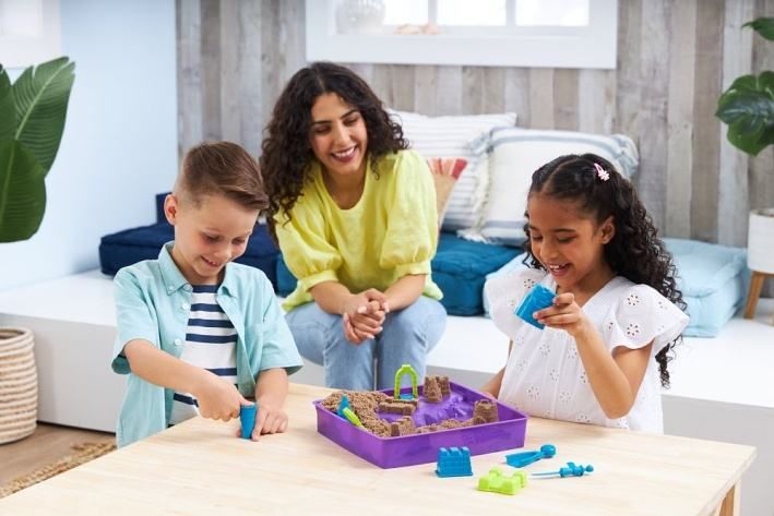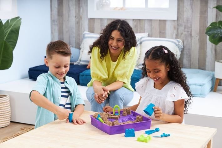 S hrací sadou Deluxe Beach Castle zažijte kouzelnou atmosféru pláže kdekoli! Tato hrací sada obsahuje 1,1 kg plážového kinetického písku a vše, co potřebujete ke stavění velkolepých hradů z písku. Rozbalte krabici a objevíte hrací prostor s pískem, který