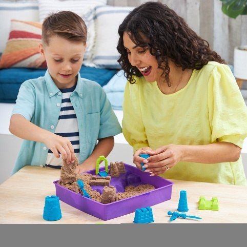 S hrací sadou Deluxe Beach Castle zažijte kouzelnou atmosféru pláže kdekoli! Tato hrací sada obsahuje 1,1 kg plážového kinetického písku a vše, co potřebujete ke stavění velkolepých hradů z písku. Rozbalte krabici a objevíte hrací prostor s pískem, který je ideální pro stavění hradů z písku doma i venku! Plážový kinetický písek je vyroben z větších zrnek přírodního písku a poskytuje jedinečný smyslový zážitek. Využijte 9 formiček s motivem hradu na dvouúrovňové podložce pro kinetický písek a stavte hrady z písku, věže, zdi, mosty a spoustu dalšího! Připravte se na vymýšlení vlastního hradu, nářadí vám poslouží i jako jeho dekorace. 2 víceúčelové nástroje na kinetický písek jsou ideální pro řezání, kopání, hrabání a nabírání tvarovatelného písku na lopatku. Úklid je hračka! Kinetický písek se na sebe lepí a usnadňuje úklid. K hrací sadě Deluxe Beach Castle patří víko pro snadné skladování. Zavřete sadu a ukliďte ji, abyste ji mohli používat znovu a znovu a užít si ještě více zábavy! Tento kouzelný písek, který dokáže zaujmout víc než výtvarná hlína, se snadno tvaruje a nikdy nevyschne, což umožňuje hodiny samostatné hry. Tato hrací sada je nejen skvělou alternativou k výtvarné modelíně, ale také úžasným přídavkem doplňkem k vašemu stolu s výtvarnými potřebami, dětskému tvoření a Montessori hračkám! Perfektní cool hračky pro holky i kluky, které podporují samostatnost a představivost. Pokud si s kinetickým pískem chcete užít ještě více zábavy, doplňte do své hrací sady velké 1,1kilogramové sáčky s barevným pískem (prodávají se samostatně)! Zažijte zábavu na pláži i doma a postavte si vlastní hrady z písku se sadou kinetického písku Beach Sand Kingdom!