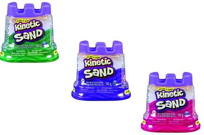Tato varianta Kinetického písku nabízí 6 barev – přírodní, bílá, modrá, růžová, fialová, zelená (prodávané samostatně). Smíchej je dohromady, rozmělňuj, krájej, formuj do různých tvarů. Obal je zároveň formička pro pvorbu hradeb. Neobsahuje pšenici, lepek ani kasein.