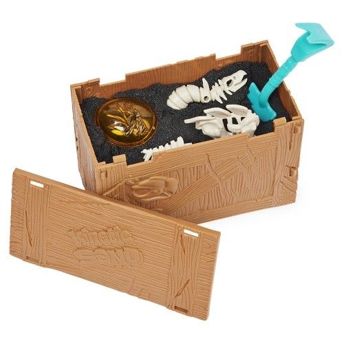 Otevři truhlu, začni kopat přiloženou lopatkou a zjisti, jaký dinousaur nebo prehistorický předmět se v tekutém písku ukrývá. Vhodné od 3 let.