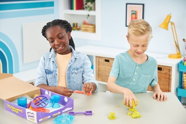 Rozvíjejte fantazii a kreativitu se sadou Ultimate Sandisfying Set! Tato sada kinetického písku obsahuje 900 gramů růžového, žlutého a modrozeleného písku a 10 formiček a nástrojů, které nabízejí nekonečné možnosti hry s pískem. Děti můžou písek míchat, v