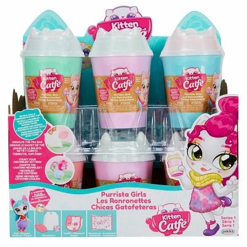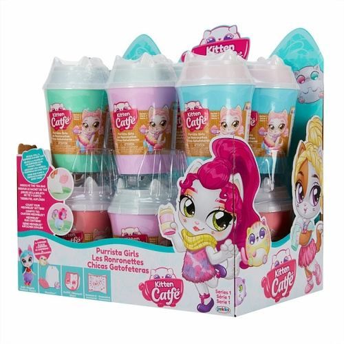 Kitten Catfé kelímek série 1 je plný překvapení, stačí ho jen otevřít. Uvnitř najdeš roztomilou panenku (kočičku), doplňky, pytlík s „čajem“, návod a letáček. Kočiček je celkem 12, zkus je tedy nasbírat všechny! Panenku můžeš obléknout, dát jí botičky. Do kelímku můžeš vložit tajemný pytlík s „čajem“, nalij vod, chvilku počkej a pozor, překvapení!!! Víčko od kelímku můžeš také použít jako pelíšek pro kočičku. Kelímek můžeš také použít jako nádobu na pití. Jen dávej pozor, nádoba není vhodná na horké nápoje. Pro děti od 3 let.