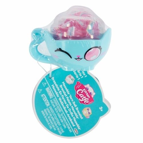 Kittne Catfé šálek ukrývá náramek s roztomilým přívěskem. Můžeš získat až 24 různých postaviček. Výrobek je vhodný pro děti od 3 let.