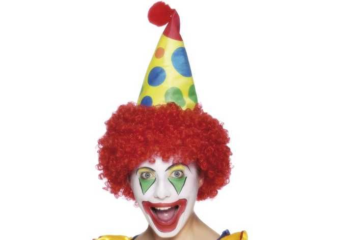 Přemýšlíte, jak udělat svému dítěti radost? Převlečte se na jeho narozeniny za veselého klauna! Nabízíme špičatý klaunský klobouk s bambulí a kudrnatou červenou paruku. Paruka a klobouk jsou spojené.
