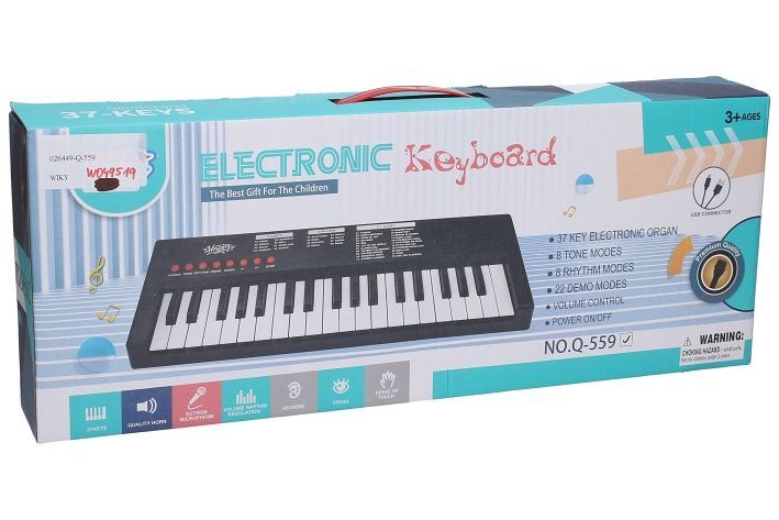 Klávesy s mikrofonem. rozměry: 40x3x15,1x3,5cm. USB kabel součástí. Baterie 3x AA nejsou součástí