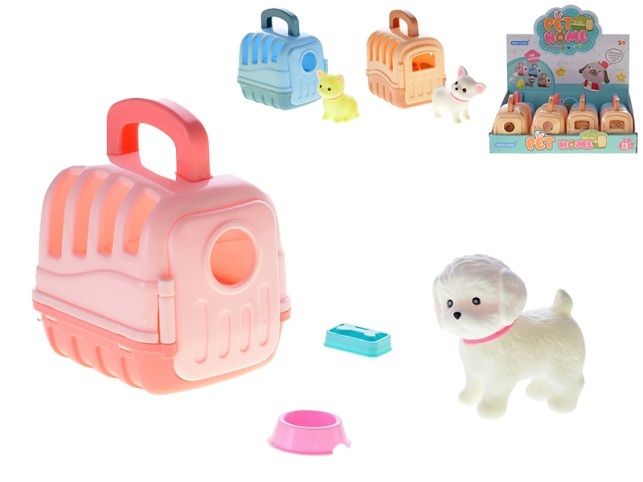 Klec přenosná se zvířátkem a doplňky 2druhy 3barvy