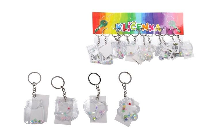 Klíčenka akrylová s glitrem a tekutinou, mix