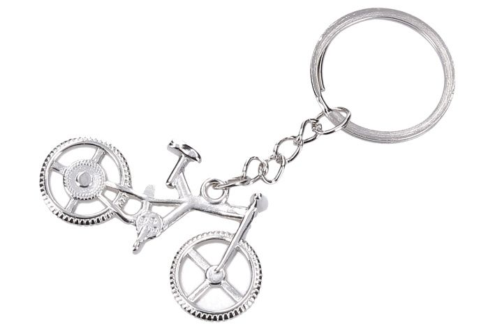 Klíčenka stříbrná ve tvaru kola.