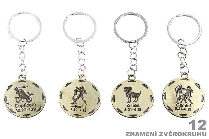 Klíčenka zodiac kulatá. 12 znamení zvěrokruhu.