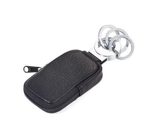Mini peněženka z pravé kůže na jedné straně, inovativní klíčenka na straně druhé.