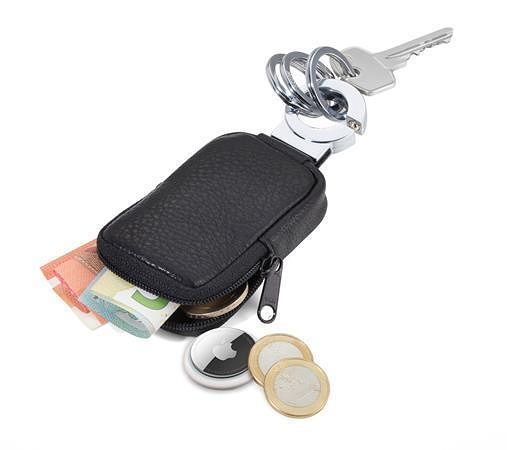 Klíčenka s kapsičkou na drobné, Apple AirTag, čip do nákupního košíku, apod. 3 kovové kroužky na klíče, praktický "click-lock"