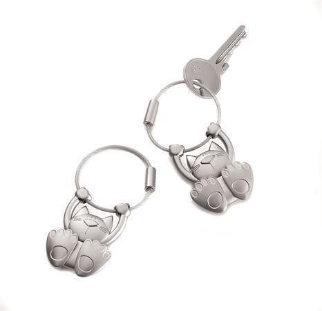 Klíčenka s kroužkem a přívěskem ve tvaru houpající se kočky.