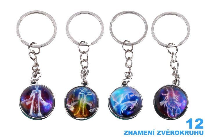 Skleněná oboustranná klíčenka Zodiac. 12 znamení zvěrokruhu.