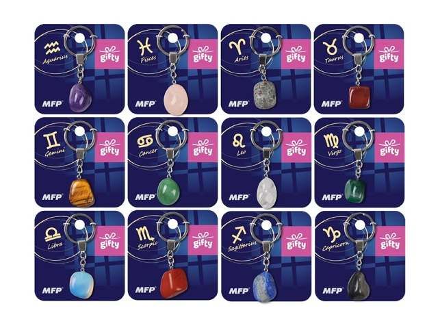 Display s 36 klíčenkami Zodiac z kolekce Gifty představuje kompletní kolekci inspirovanou znameními zvěrokruhu. Každé znamení je zastoupeno třemi jedinečnými klíčenkami, které zdobí ručně opracovaný přírodní kámen, dokonale vystihující charakteristiku daného znamení. Díky kvalitnímu kovovému kroužku lze klíčenku snadno připevnit na klíče, tašku nebo batoh. Tento elegantní a praktický doplněk je nejen krásným talismanem, ale také skvělým dárkem pro všechny věkové kategorie. Je vhodná na každodenní nošení a současně má hlubší význam. OBSAH BALENÍ: - 36 ks klíčenek (3 x Vodnář - ametyst, 3 x Ryby - růženín, 3 x Beran - heliotrop, 3 x Býk - karneol, 3 x Blíženci - tygří oko, 3 x Rak - avanturín, 3 x Lev - křišťál, 3 x Panna - achát, 3 x Váhy - opalit, 3 x Štír - jaspis, 3 x Střelec - lapis lazuli, 3 x Kozoroh - obsidián) UPOZORNĚNÍ: Vzhledem k přírodnímu původu kamenů se jejich tvar, velikost a barva mohou mírně lišit, což podtrhuje jejich jedinečnost. Uvedená cena je za 1 balení.
